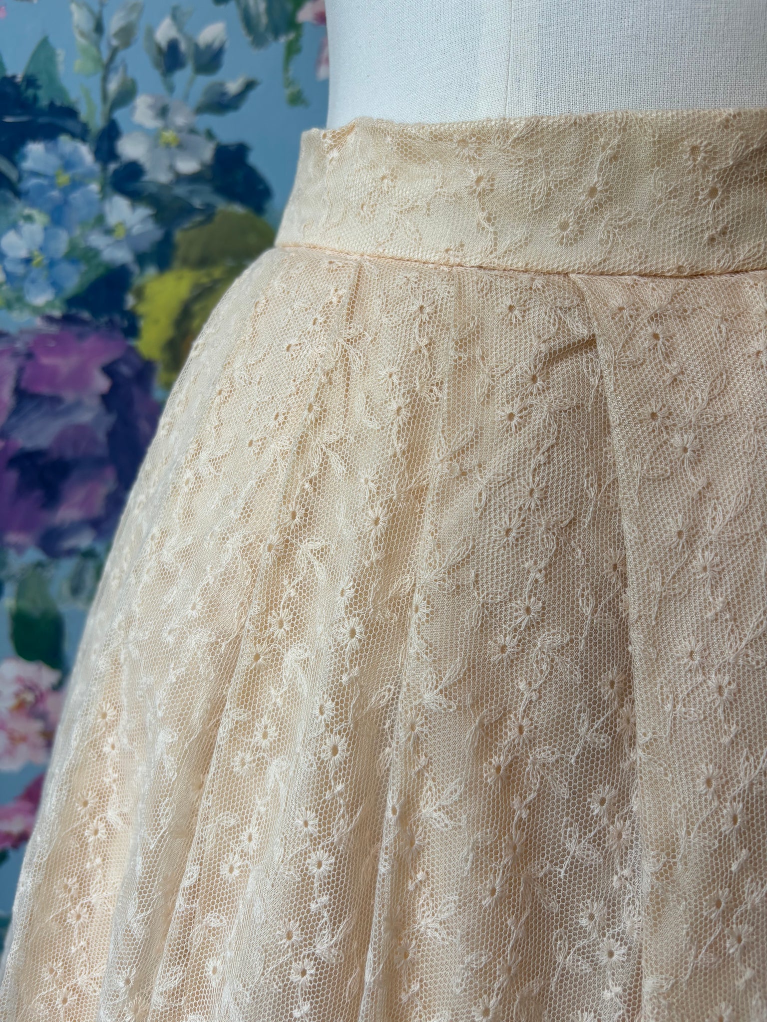 Large pleated waist, layers of petticoat for voluminous impact; the maxi skirt is nothing short of Vintage necessity. Worn as a full costume, a bridal outfit or split apart for endless styling enjoyment.